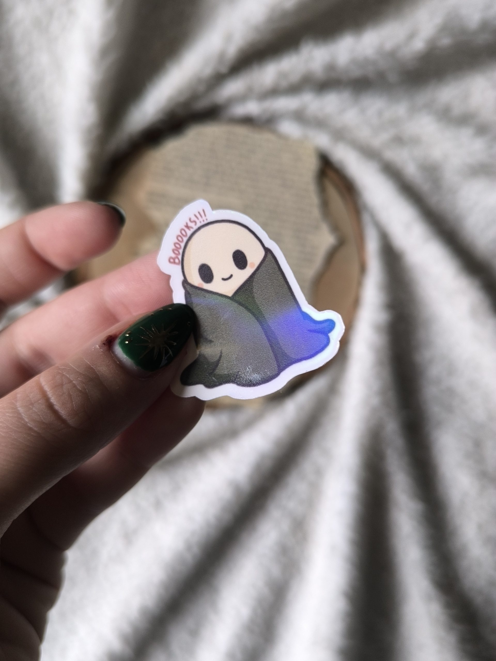 « Booooks » est un sticker d’abord dessiné numériquement, puis imprimé, plastifié et découpé dans mon atelier. Chaque pièce est une création artisanale, et peut donc présenter de très légères irrégularités qui témoignent de son caractère unique et fait main.