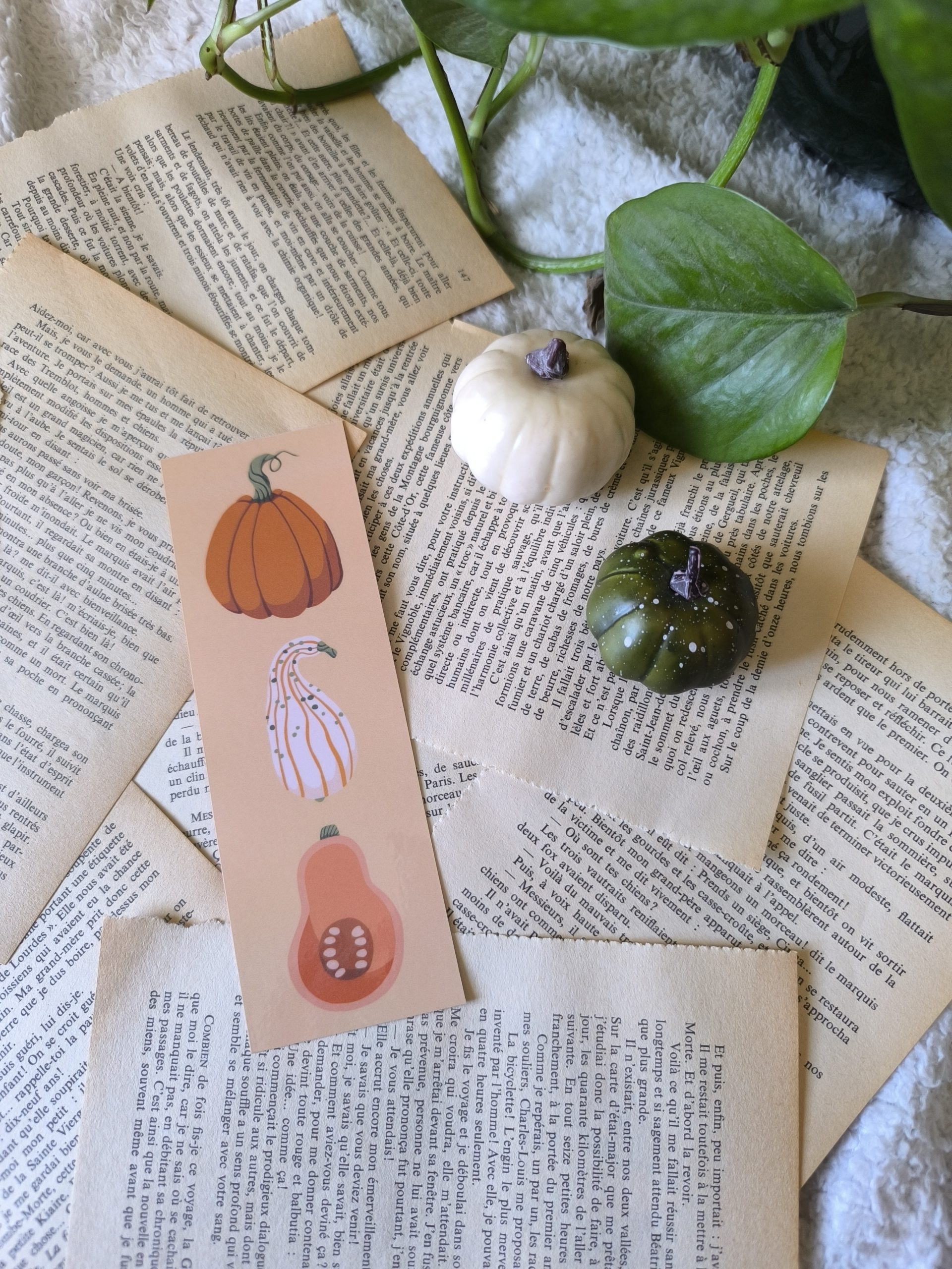 Ce marque-page au design automnale est dessiné, imprimé, plastifié et découpé à la main.
