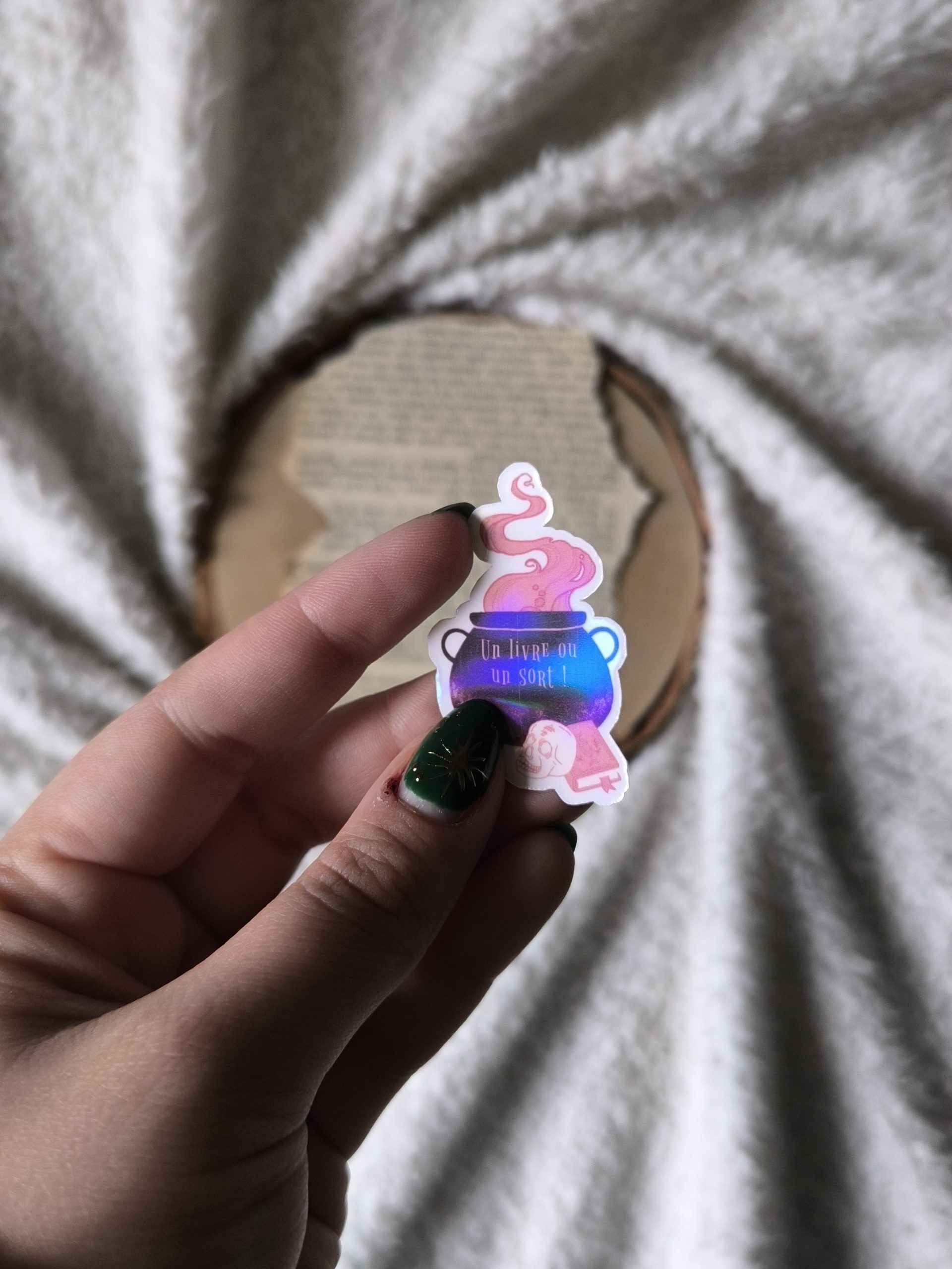 « Livre ou Sort » est un sticker d’abord dessiné numériquement, puis imprimé, plastifié et découpé dans mon atelier. Chaque pièce est une création artisanale, et peut donc présenter de très légères irrégularités qui témoignent de son caractère unique et fait main.