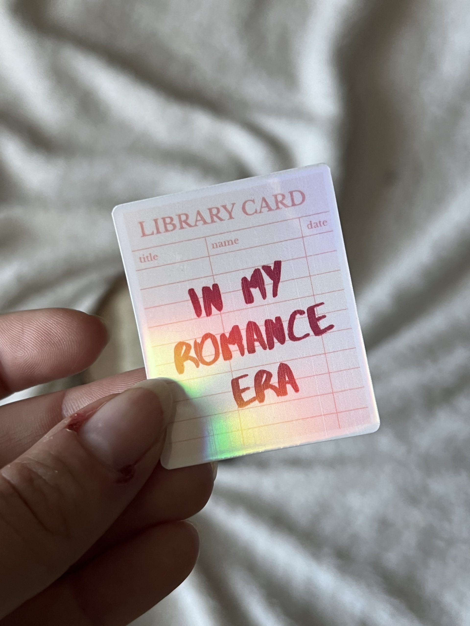 « Romance Era » est un sticker d’abord dessiné numériquement, puis imprimé, plastifié et découpé dans mon atelier. Chaque pièce est une création artisanale, et peut donc présenter de très légères irrégularités qui témoignent de son caractère unique et fait main.